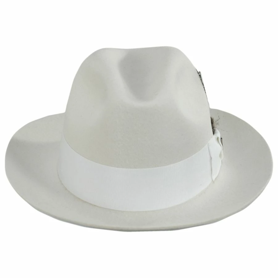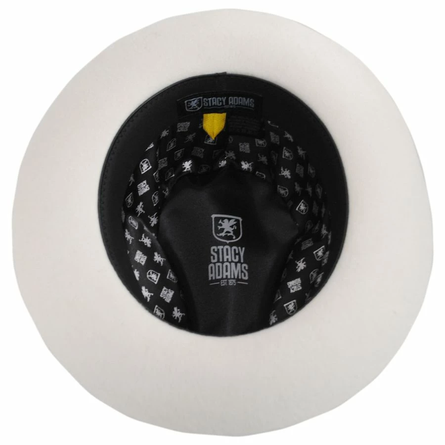 Introducing the Cannery Row Wool Felt Fedora Hat by Stacy Adams. This is a great classic style fedora that will be your favorite for years to come. A traditional silhouette that conjures up characters of film noir or pulp fiction, mystery and suspense will be at the ready with the Stacy Adams Canner Row Wool Felt Fedora Hat.