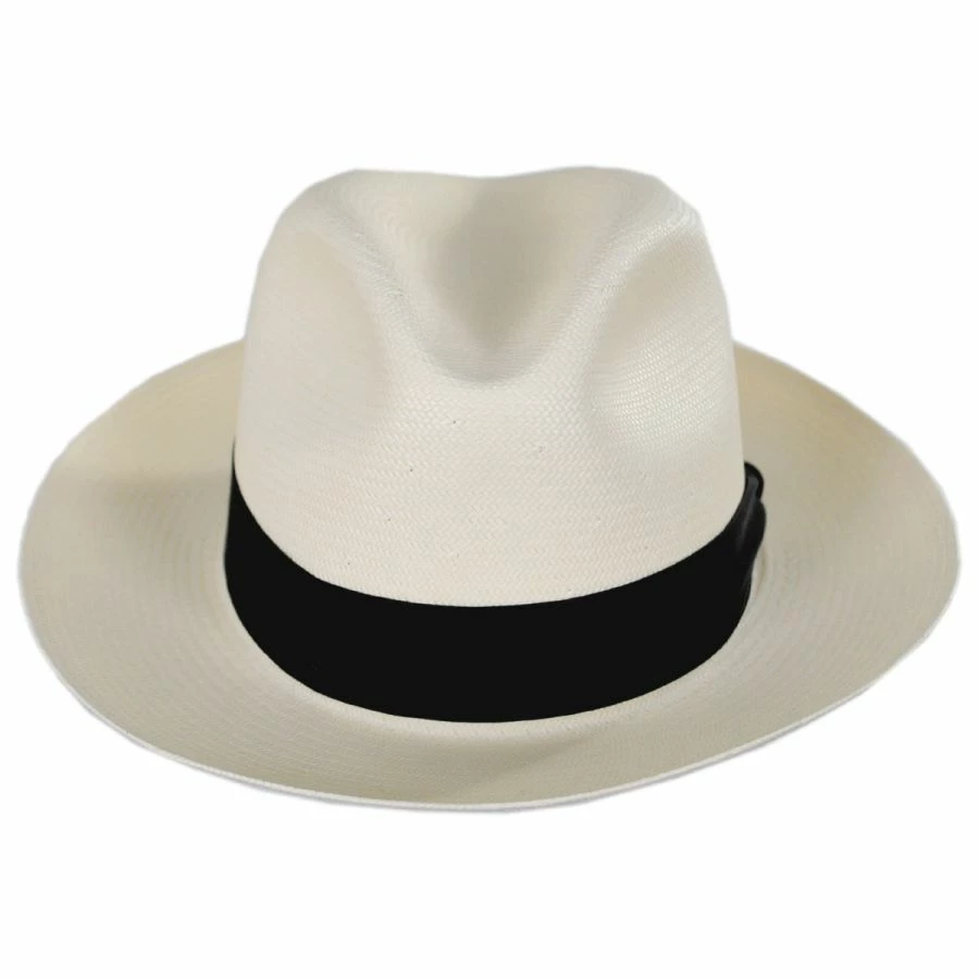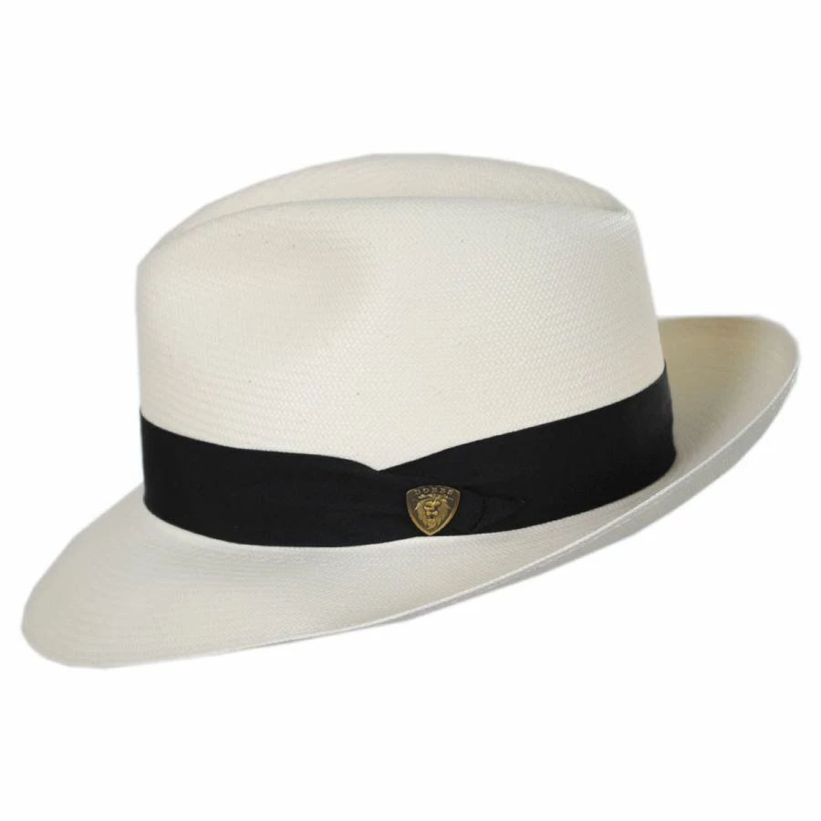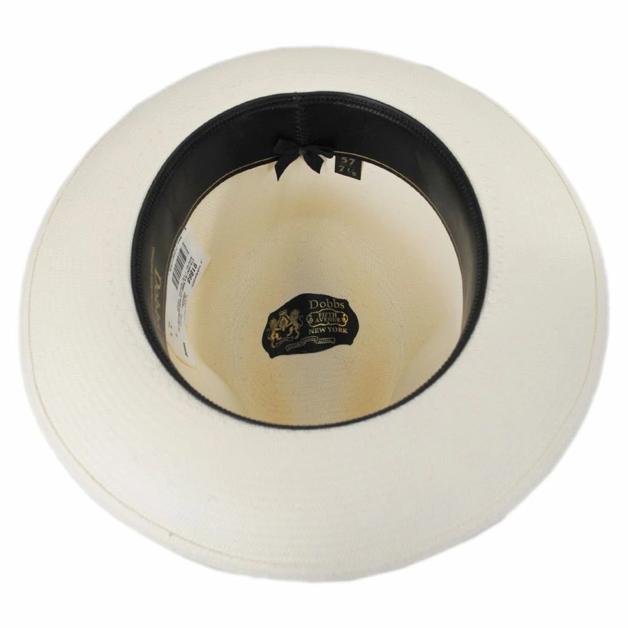Class and style come together in the Center Pinch Shantung Straw Fedora Hat from Dobbs. This high-quality hat features a grosgrain ribbon hat band, topped with a signature Dobbs metal side pin, as well as a beautiful firm finish on the Shantung body. This American-made hat is simply the tops!