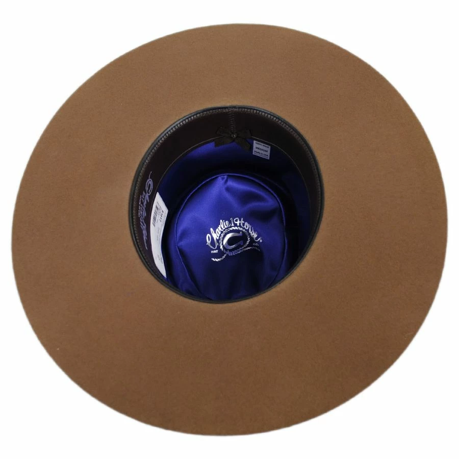The High Desert Wool Felt Gambler Hat from Charlie 1 Horse is a high-quality hat. Made in America, this hat is pure, durable, comfortable wool, with a soft satin interior lining that just cannot be ignored. Additionally, the leather hat band matches the leather sweatband, making for one beautiful, quality gambler.