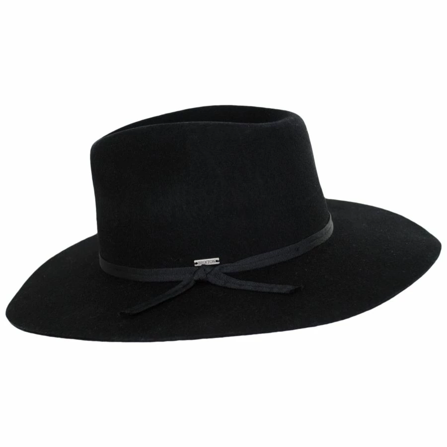 The Cohen Wool Felt Cowboy Hat is a wonderful laidback western brought to you by Brixton Hats. Features a stiff body with a teardrop crown and a contemporary flat brim. The 2-ply grosgrain ribbon hat band and raw edge brim are classic characteristics of a traditional western. Want to add a subtle western flair to your look, choose the Cohen!