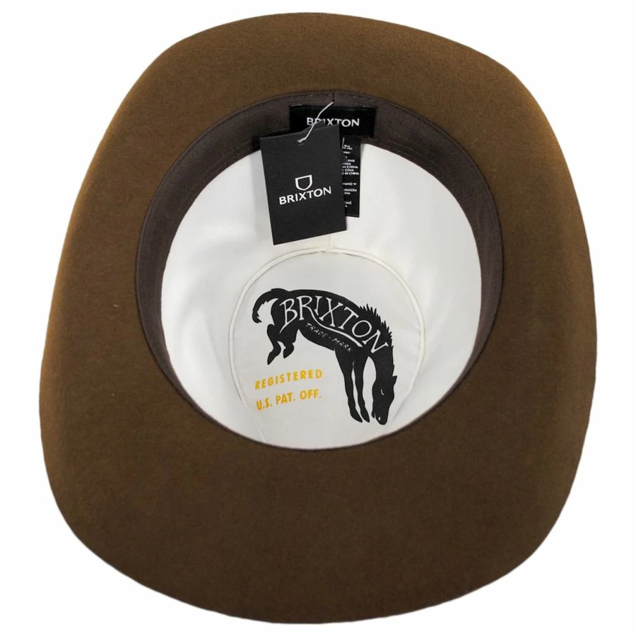 Brixton Hats is bringing us a laidback western style with the Duke Wool Felt Cowboy Hat. Features a stiff body with a center pinch crown and classic cowboy curved brim. The ultra narrow grosgrain ribbon hat band adds just a touch of sophistication while the raw edge brim balances it back to a relaxed style. On the interior, a cotton twill sweatband and a satin lining provide comfort. The Duke is perfect for just a subtle addition of western to any style!