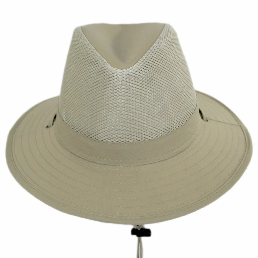 Dorfman Pacific Company’s revolutionary HyperKewlâ„¢ Plus technology is what makes the Fridge HyperKewl Safari Fedora Hat so cool (pun intended)! Simply soak your hat in water for 1-2 minutes. Gently squeeze out excess water and enjoy the cooling effects for the next 5 to 10 hours. The Fridge features a 2 1/2″ brim, chin cord and vented crown with mesh sidewalls.