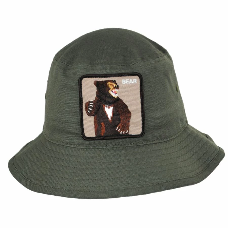 Yawn and stretch your way out of hibernation with the Bear Cotton Bucket Hat from Goorin Bros! Similar to their trucker baseball caps, this hat features an bear patch at the front. With a canvas-like body made of 100% cotton, this bucket also features sewn eyelets for ventilation, a cotton sweatband and is unlined.