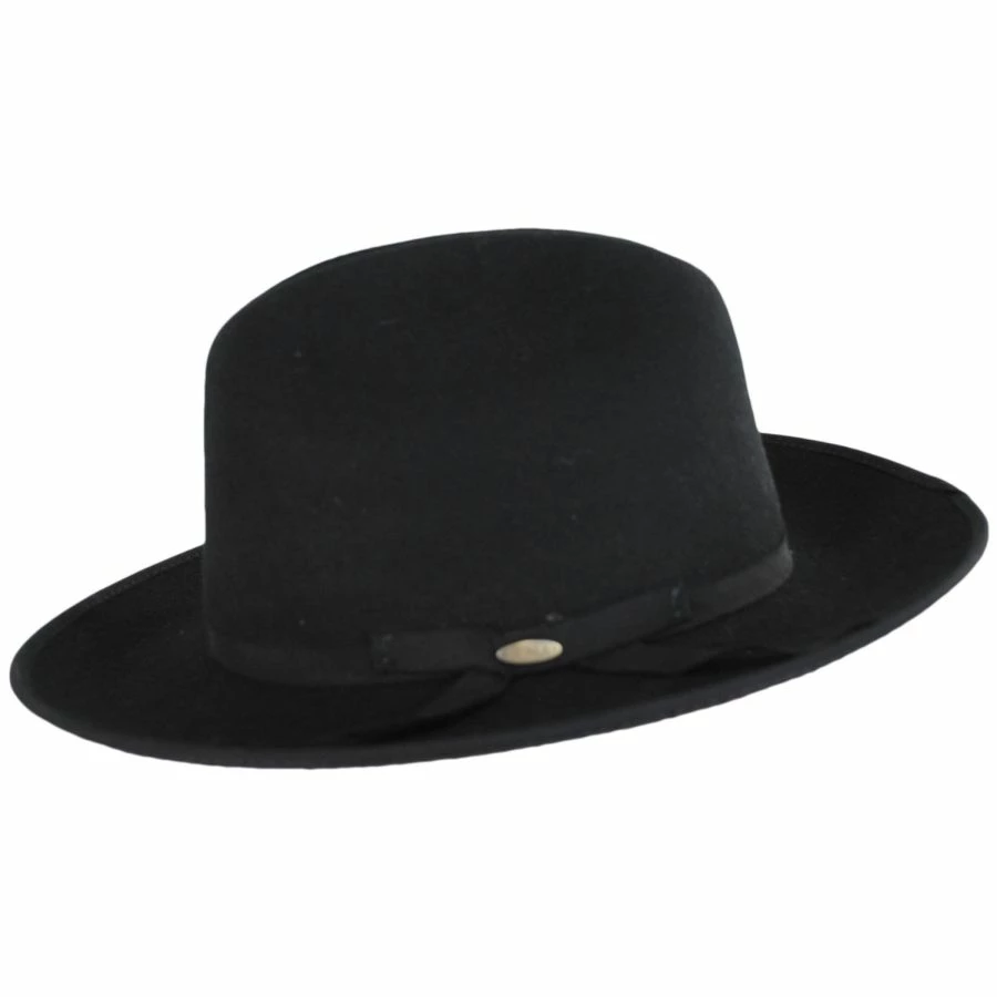 A simple wool felt to mimic the famous open road western, we introduce to you the Zamora Wool Felt Cattleman Western Hat by Scala. The Zamora also features a grosgrain ribbon hat band and has a stiff body. Made in Mexico, this western hat is finished with a grosgrain ribbon binding on the brim.