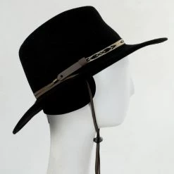 The Ashley Crushable Wool Felt Earflap Aussie Hat by Stetson is an Aussie style wide brim hat constructed of 100% crushable wool felt. Detailed with patterned hat band and leather chincord, a Stetson side pin trims the left side. Also features retractable ear flaps for cooler weather.