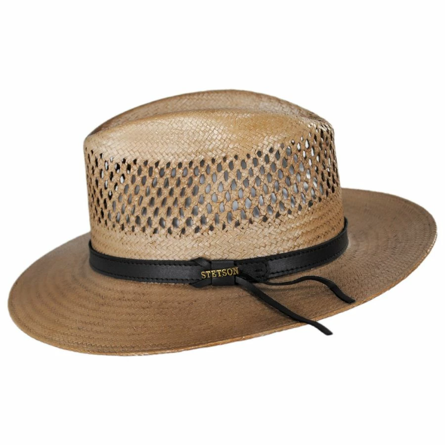The Peak View Shantung Straw Safari Fedora Hat from Stetson is a cut above the rest! This stunning hat was made in Mexico, and features a vented crown that is breathable and comfortable. Speaking of comfortable, the cotton twill sweatband is soft and durable, sure to make for a perfect fit!